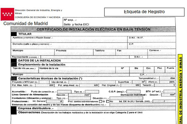 Para la obtención del Certificado Eléctrico o boletín eléctrico en Madrid no debe preocuparse por nada. Nosotros revisaremos su instalación eléctrica sin compromiso y le tramitaremos el Certificado de Instalación Eléctrica de Baja Tensión requerido.